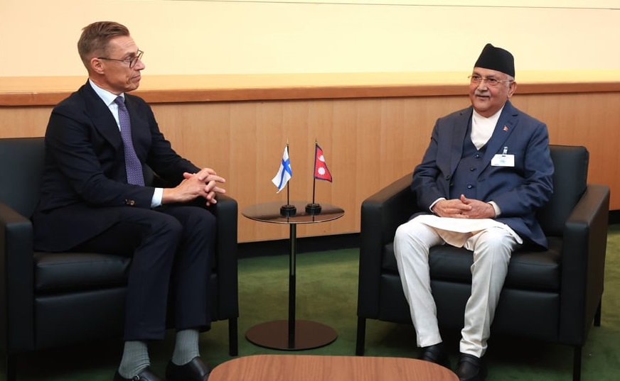 न्युयोर्क । संयुक्त राष्ट्रसंघको ७९औं महासभामा भाग लिने क्रममा अमेरिकाको न्युयोर्कमा रहेका प्रधानमन्त्री केपी शर्मा ओली र फिनल्ययान्डका राष्ट्रपति अलेक्जेण्डर स्टबबीच आज भेटवार्ता भएको छ । उनीहरुबीच राष्ट्रसंघको मुख्यालयमा भेटवार्ता भएको हो ।