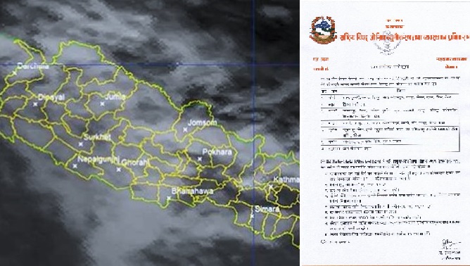 बिहीबारदेखि आइतबारसम्म चार दिन भारी वर्षा एवं अति भारी मनसुनी वर्षा हुने मौसम विभागले जनाएको छ । प्राधिकरणले धान नकाट्ने, काटिसकेको भए तत्काल थन्काउने, तराई तथा मधेस क्षेत्रमा भुइँतालमा अन्नपात नराख्ने, पहिरो जोखिम भएका स्थानमा र नदी किनारा बस्तीमा उच्च सतर्कता अपनाउन र दाउरा निकाल्न तथा माछा मार्न नदी किनारामा नजाने सूचना जारी गरेको छ।