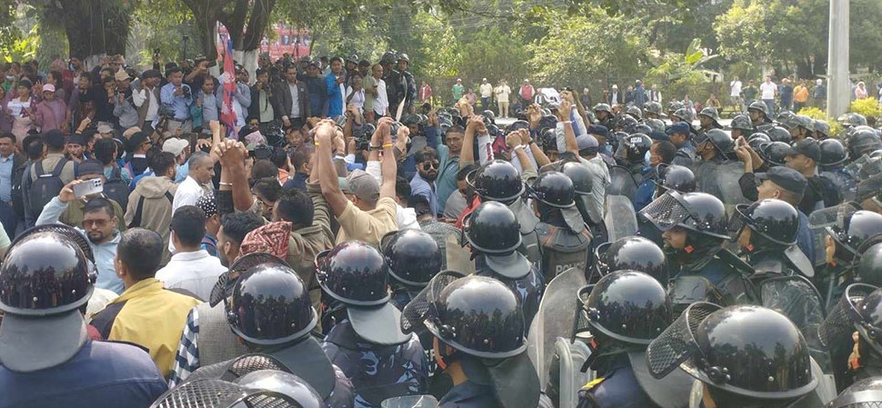 निषेधित क्षेत्रबाट रास्वपा नेता कार्यकर्तालाई हटाउन ठूलो मात्रामा प्रहरी परिचालन गरिएको छ । रास्वपाका सभापति सहकारी ठगीको आरोपमा प्रहरीले पक्राउ गरेपछि त्यसको बिरोध गर्दै रास्वपा बिरोधमा उत्रिएको छ ।