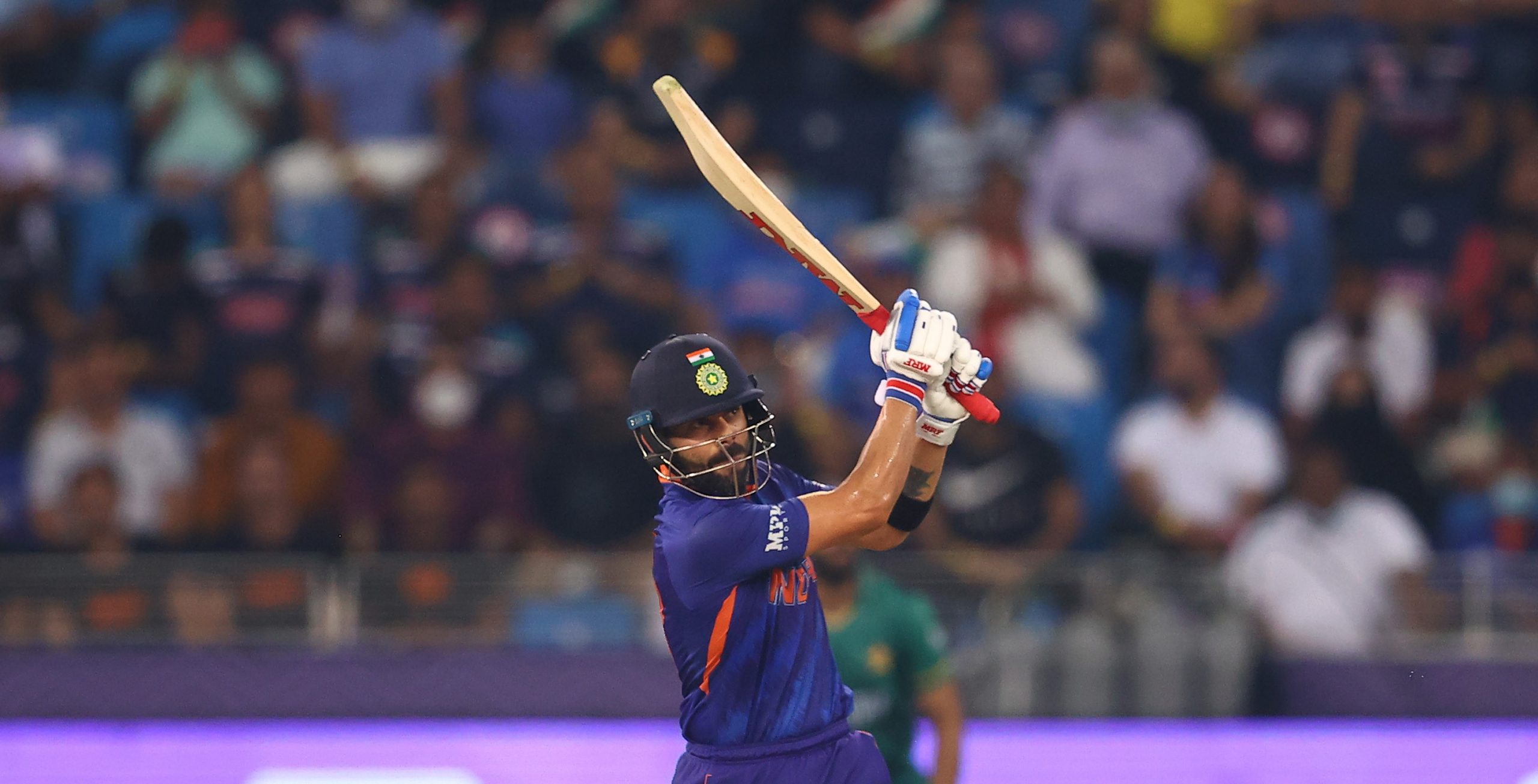 त्यसअघि दुबई इन्टरनेशनल क्रिकेट स्टेडियममा टस हारेर ब्याटिङको निम्तो पाएको भारतले निर्धारित २० ओभरमा ७ विकेट गुमाउँदै १ सय ५१ रन बनाएको थियो । भारतका कप्तान विराट कोहलीले ४९ बलमा ५ चौका र १ छक्का सहित सर्वाधिक ५७ रन बनाए । कोहलीले ४५ बलमा आफ्नो अर्धशतक पूरा गरेका थिए । टि२० विश्वकपमा कोहलीको यो १० औं अर्धशतक हो । कोहलीको टि२० आई करिअरको २९ औं अर्धशतक हो ।