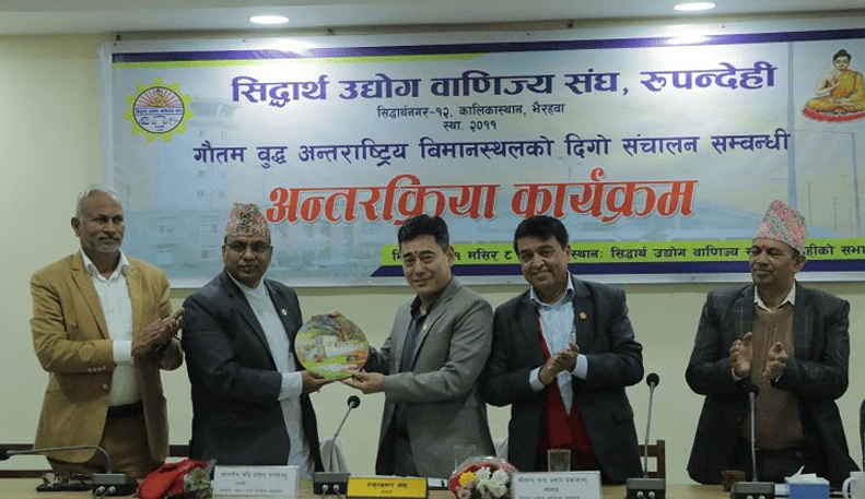 सिद्धार्थ उद्योग वाणिज्य संघ रुपन्देहीद्धारा शनिबार भैरहवामा आयोजित गौतमबुद्ध अन्तर्राष्ट्रिय विमानस्थलको दिगो सञ्चालनसम्बन्धी अन्तरक्रिया कार्यक्रममा व्यवसायीहरूले आशंका गरेपछि मन्त्री पाण्डेले अन्तर्राष्ट्रिय उडान नरोकिने प्रतिबद्धतासमेत जनाएका छन् ।