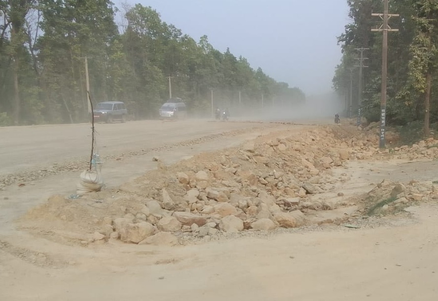 पछिल्लो १३ दिनदेखि सडक विस्तारको काम सुरु भएको हामीलाई जानकारी आएको छ, उनले भने, अहिले सबबेस, बेस, अप्रोज रोड (नयाँ बनेको पुललाई सडकसँग जोड्न माटो भर्ने काम), कल्भर्ट निर्माण, ढुङ्गाको पर्खाल निर्माण गर्ने काम भइरहेको छ । यस खण्डमा बनेका १६ पुलमा अप्रोज रोड बनाउनुपर्नेमा अहिले नौ वटामा काम भइरहेको र बाँकी सातवटामा पनि चाँडै काम सुरु गरिनेछ ।