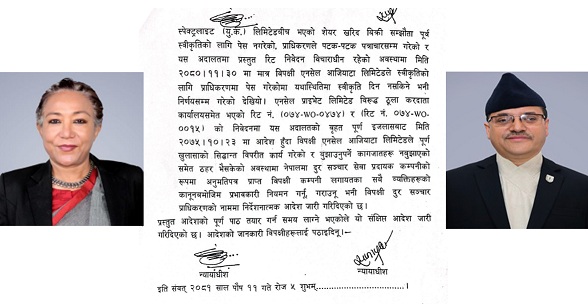 एनसेलको सेयर खरीदबिक्री सम्झौतालाई प्राधिकरणले यसअघि नै नियमविपरीत भएको भन्दै पत्रचार गरिसकेको हुनाले अन्तरिम आदेश जारी गरिराख्नु नपर्ने भन्दै सर्वोच्चले निवेदकको मागवमोजिमको आदेश जारी गरिरहनु नपर्ने र रिट निवेदन खारेज हुने ठहर गरेको छ ।
