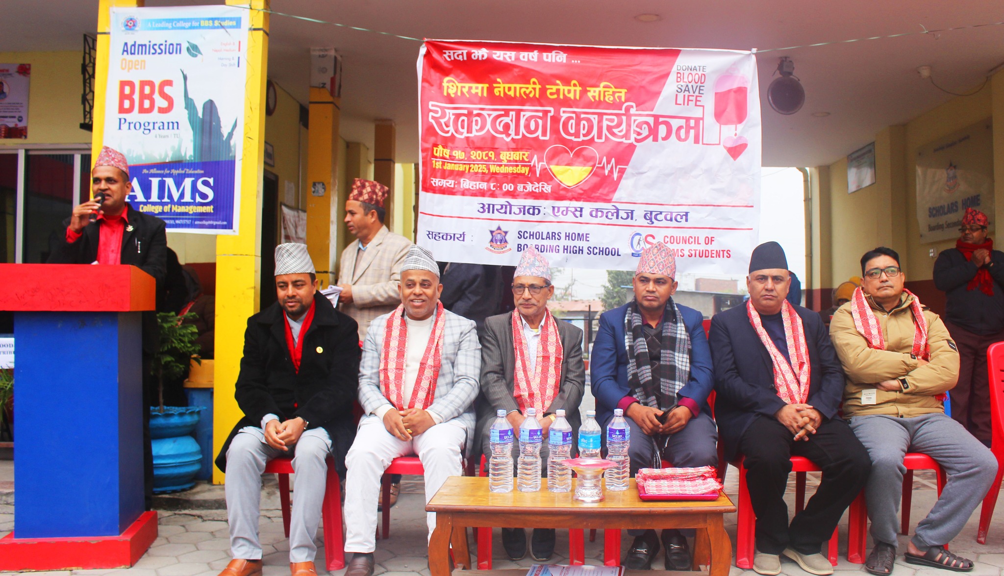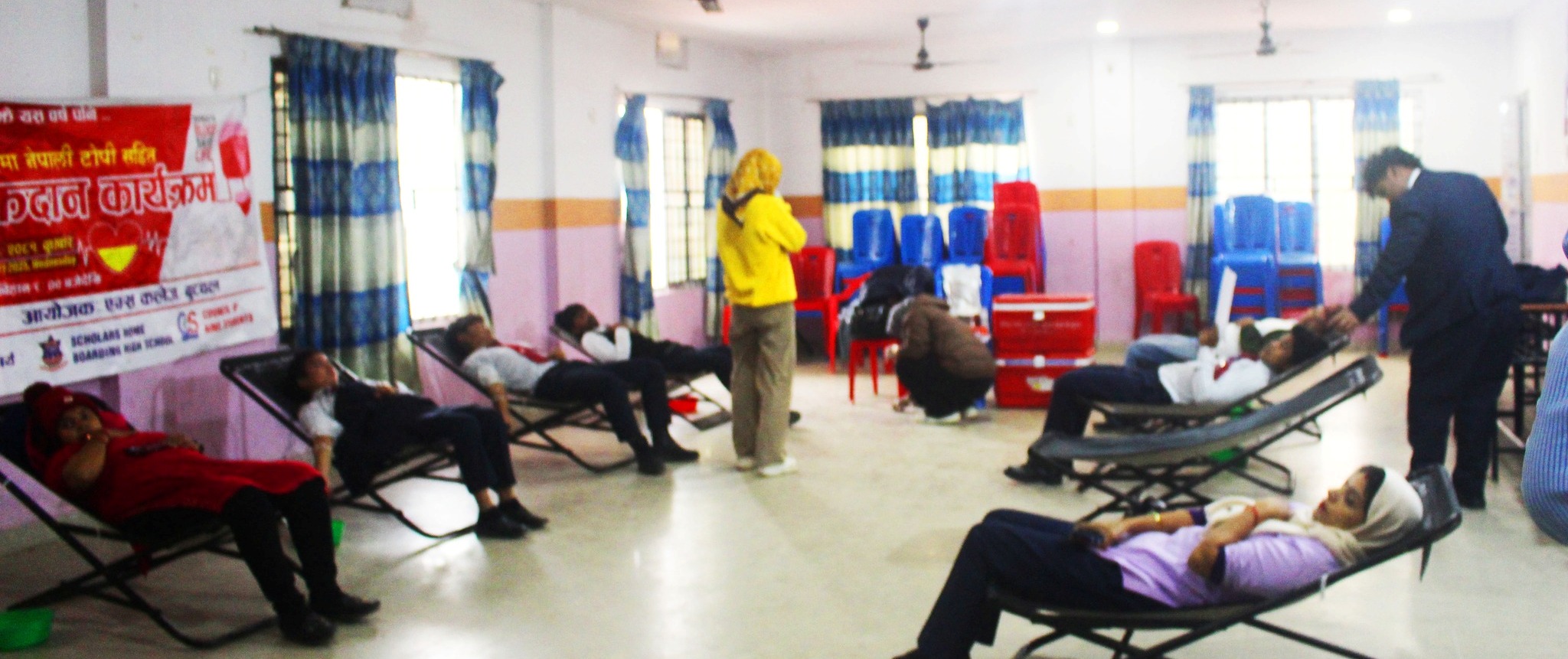 स्कलर्स होम बोर्डिङ स्कुल, काउन्सिल अफ एम्सको सहकार्य र नेपाल रेडक्रस सोसाइटी, रक्तसंचार केन्द्र बुटवलको प्राविधिक सहयोगमा कलेजले आफ्नै परिसरमा रक्तदान कार्यक्रम गरेको हो ।
