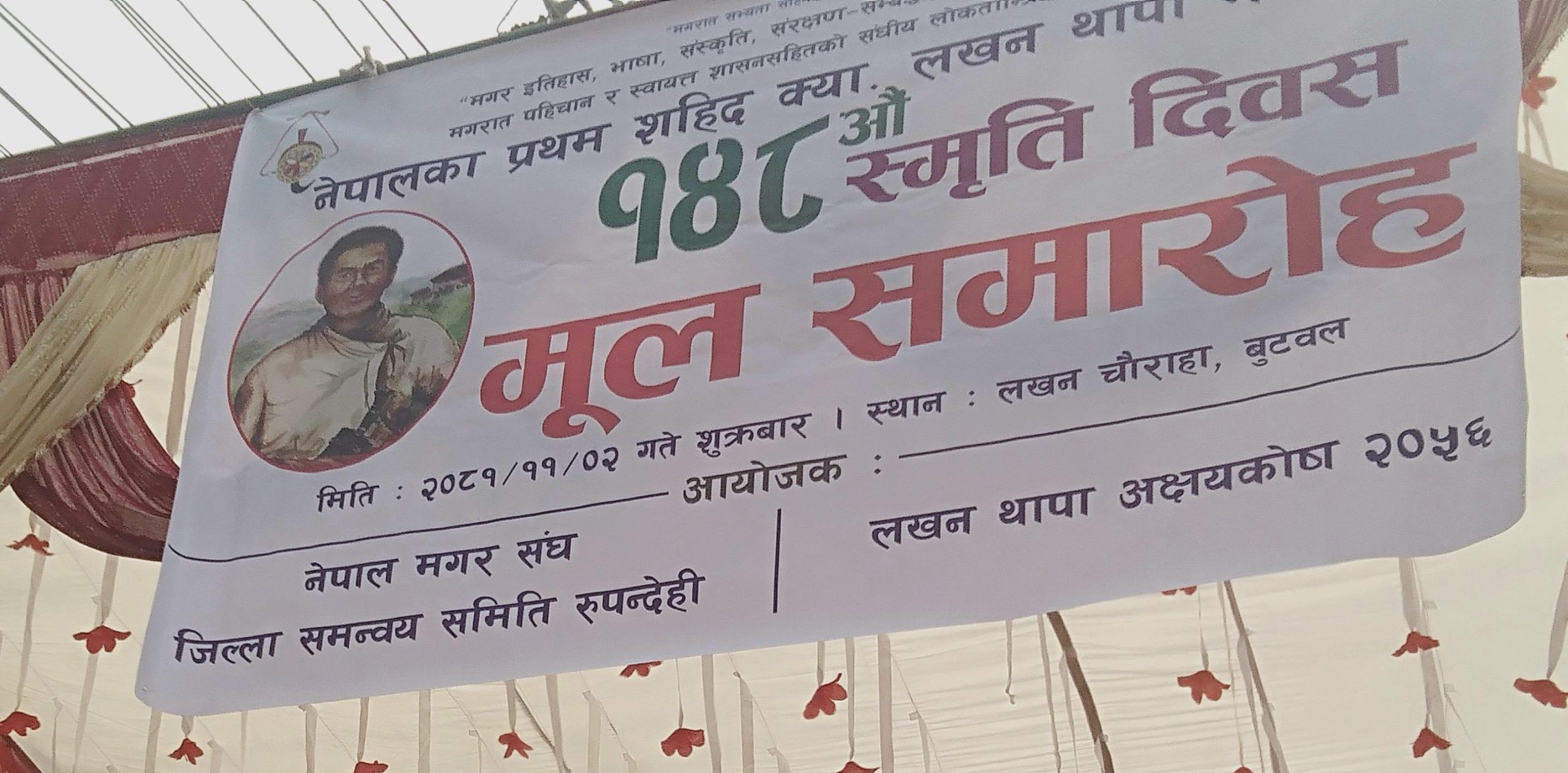 शहीद लखन थापा मगरको १ सय ४८ औं स्मृति दिवसको अवसरमा शुक्रबार बुटवलमा आयोजित कार्यक्रममा बोल्ने सहभागि वक्ताले प्रथम शहीदलाई राज्यले अपमान गरेको बताउंदै सम्मानका साथ राष्ट्रिय विभूति घोषणा गर्न माग गरेका हुन् । शहीद लखन थापा मगरलाई नेपालको राष्ट्रिय विभूति घोषणा गर्न माग उनीहरुले सरकारसंग माग गरेका छन् ।