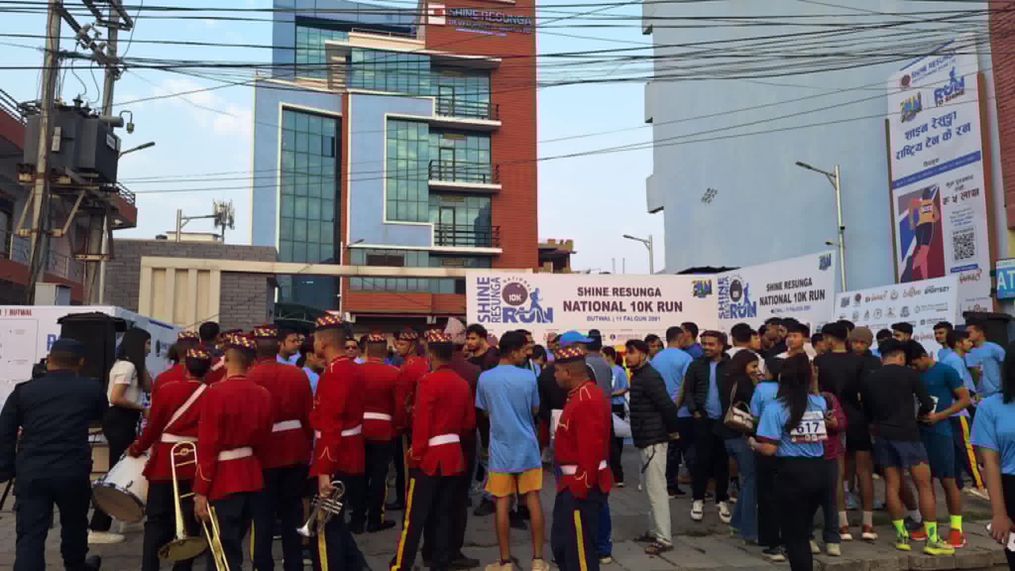 बुटवलमा केन्द्रिय कार्यालय रहेको शाइन रेसुंगा डेभलपमेण्ट बैंकले आयोजना गरेको दौड प्रतियोगिताको उपाधि पुरुषतर्फ मिङमार सिङगी तामाङ र महिलातर्फ सन्तोषी श्रेष्ठले जित्न सफल भएका छन् । आइतबार बिहान सम्पन्न १० मिलोमिटर दौडमा सर्वाधिक पुरस्कार राशीको ‘साइन रेसुंगा राष्ट्रिय टेन के रन’ प्रतियोगिताको खुल्लातर्फको उपाधि पुरुषतर्फ मिङमार सिङगी तामाङ र महिलातर्फ सन्तोषी श्रेष्ठले जितेका हुन् ।