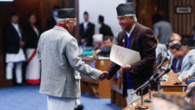 प्रचण्डसँगै सरकारमा रहेता पनि एमाले अध्यक्ष ओलीले असार १५ मा कांग्रेस सभापति शेरबहादुर देउवा र आरजु राणालाई दही चिउरा खुवाउँदै गोप्य गठबन्धन गरे । त्यसपछि नेपाली कांग्रेस, नेकपा एमाले, जनमत पार्टी, जनता समाजवादी पार्टी, लोकतान्त्रिक समाजवादी पार्टी लगायत दलहरु मिलेर सरकार गठन भयो ।