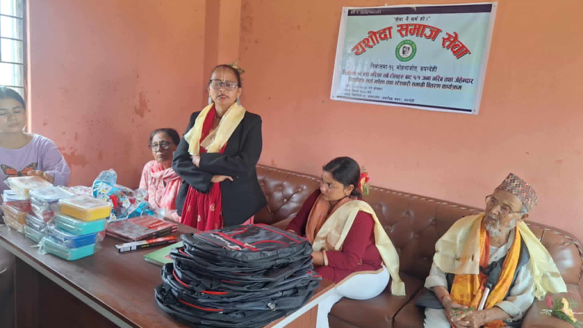 एशोदा समाज सेवाकी अध्यक्ष एशोदा थापा क्षत्रीले आर्थिक अवस्था कमजोर भएका घरपरिवारका विद्यार्थीलाई शैक्षिक सामाग्रीहरु दिएर सहयोग गरेको बताइन । विद्यार्थीको पढ्न लेख्न पाउने नैसर्गिक अधिकार स्थापित गर्दिनका लागि सबैको साथ सहयोगमा विद्यार्थीलाई शैक्षिक समाग्री वितरण गरिएको र आर्थिक अवस्था कमजोर भएका विद्यार्थीलाई शैक्षिक समाग्रीलगायत आवश्यक पर्ने अन्य सरमान सहयोग गर्दै जाने अध्यक्ष एशोदा थापा क्षेत्रीले प्रतिवद्वता जनाइन ।