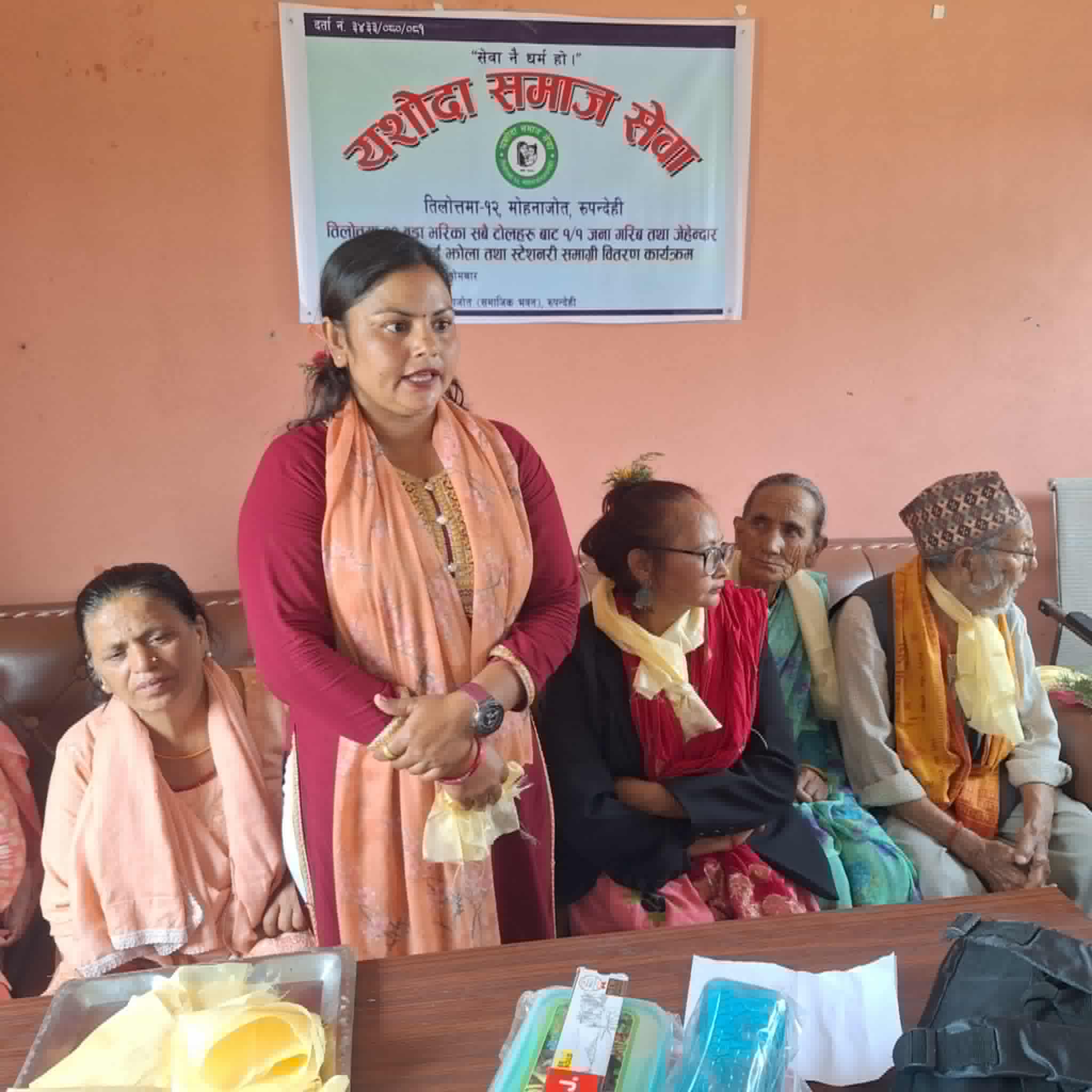 कार्यक्रममा बोल्दै तिलोत्तमा नगरपालिका वडा नम्बर १२ की वडा सदस्य विष्णु अधिकारीले सबै विद्यार्थीलाई विद्यालयको पहुंचमा पुराउनु पर्ने बताइन । उनले आर्थिक अवस्था कमजोर भएका घरपरिवारका विद्यार्थीलाई निःशुल्क पढाउने दायित्व सरकारको र सरकारले गर्ने काम एशोदा समाज सेवाले गरेको भन्दै एशोदा समाज सेवा समितिलाई धन्यबाद ज्ञापन गरिनन् ।