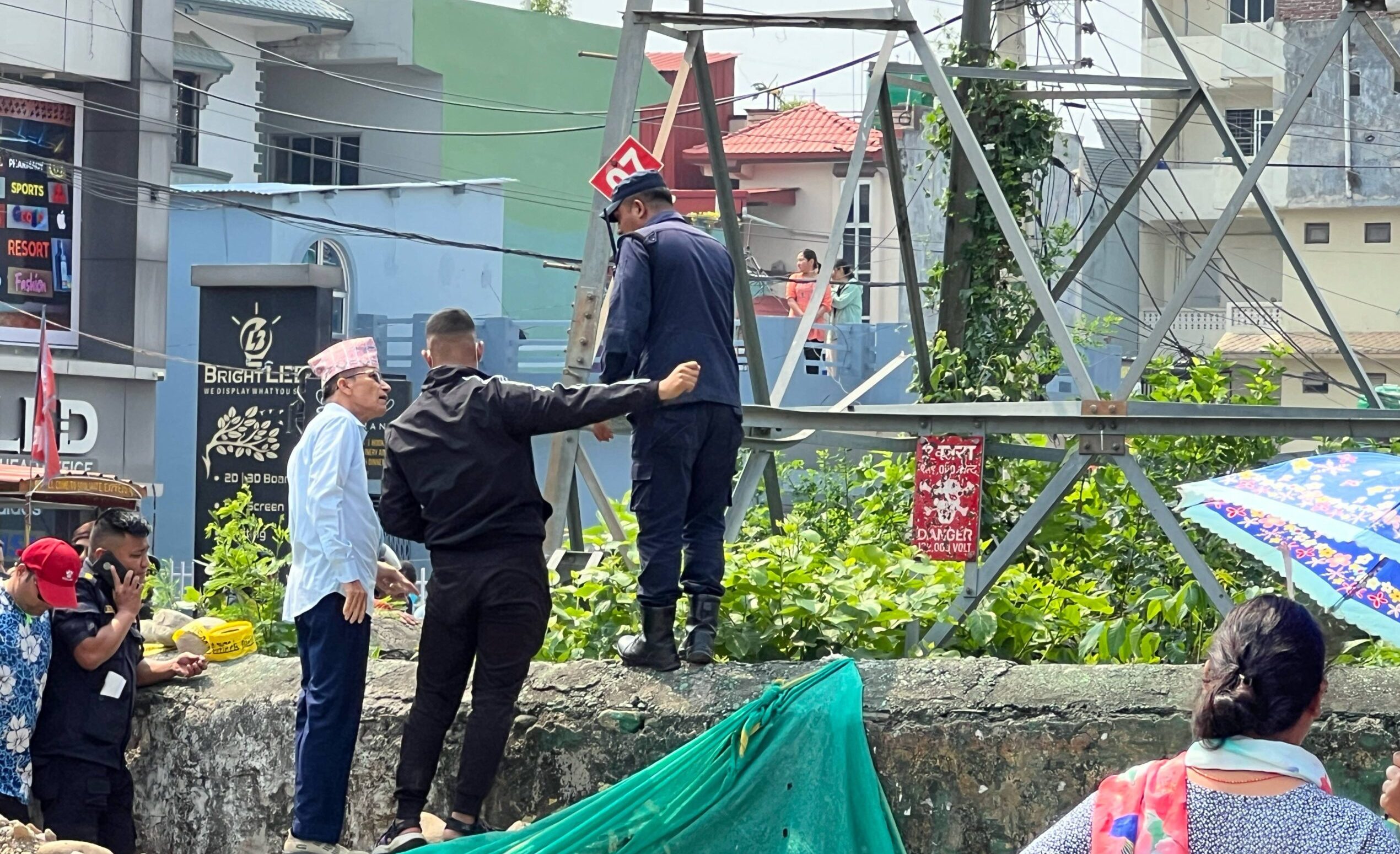 कालिका खानेपानी तथा सरसफाई उपभोक्ता संस्था अगाडि रहेको हाईटेन्सन विद्युत पोलभित्र एक जना युवाको शवसहित मोटरसाईकलसमेत भेटिएको प्रहरीले बताएको छ । प्रहरीका अनुसार अन्दाजी २० वर्षको जस्तो देखिने  युवाको अर्धनग्न अवस्थामा रहेको शव र मोटरसाईकल भेटिएको हो ।