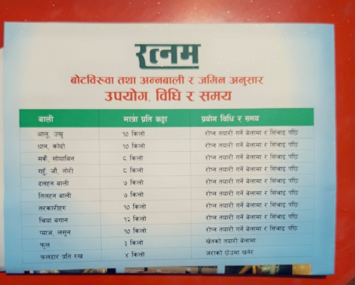 अहिले बजारमा ५० किलो रासायनिक मलको मुल्य करिब रु २४ सय छ, भने रत्मन ब्राण्डको प्रांगारिक मलको ५० किलोको मुल्य रु १५ सय तोकिएको छ । नेपालमा वार्षिक ५ लाख ३० हजार मेट्रिक टन रासायनिक मलको माग रहेको तथ्यांक छ ।