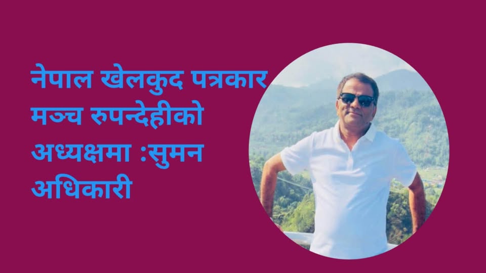 बुटवल, असार १८ गते । नेपाल खेलकुंद पत्रकार मञ्च, रुपन्देहीमा सुमन अधिकारीको नेतृत्वमा नयां कार्यसमिति बनेको छ । अन्तर्राष्ट्रिय खेलकुद पत्रकार दिवसका अवसरमा बुधबार बुटवलमा सम्पन्न भेलाले सुमन अधिकारी अध्यक्ष रहेको ११ सदस्यय जिल्ला समिति सर्वसम्मत चयन गरेको हो ।