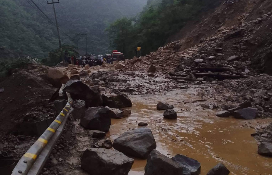 पहिरोका कारण गन्तव्यमा हिँडेका सवारीसाधन रोकिएका छन् । यस सडकखण्ड पहिरोका कारण पटक–पटक अवरुद्ध हुँदै आएको छ ।