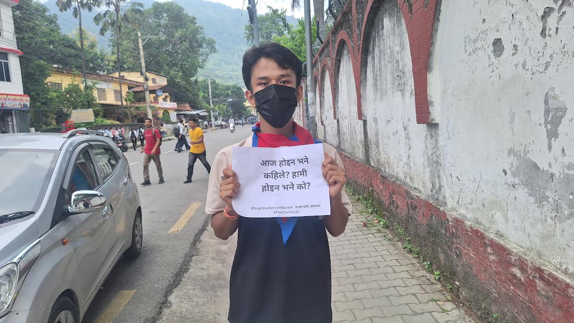 उनीहरूले ‘मलाई बोल्न दे सरकार’, नेताका छोराछोरी विदेश पढ्छन्, जनताका रातदिन पसिना चुहाउँछन्’लगायतका नारा लगाए ।