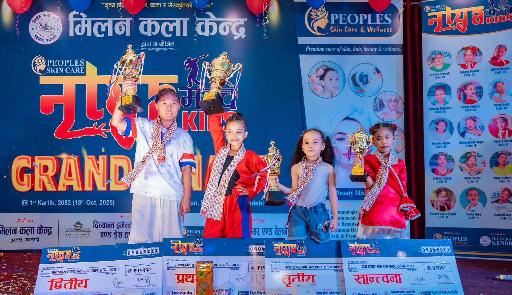 बुटवल, कार्तिक १ गते । मिलन कला केन्द्र बुटवलले सञ्चालन गरेको एकल नृत्य तथा “पीपुल्स स्किन केयर नृत्यमञ्च – किड्स २०८२ को प्रतियोगिताबाट अध्यता भण्डारी प्रथम भएकी छन् । दोस्रो प्रीती पाली, तृतिय एड्रिना क्षेत्री, सान्त्वना रिदिमा टण्डन र प्रज्ञा घर्तीमगर भएका छन् ।