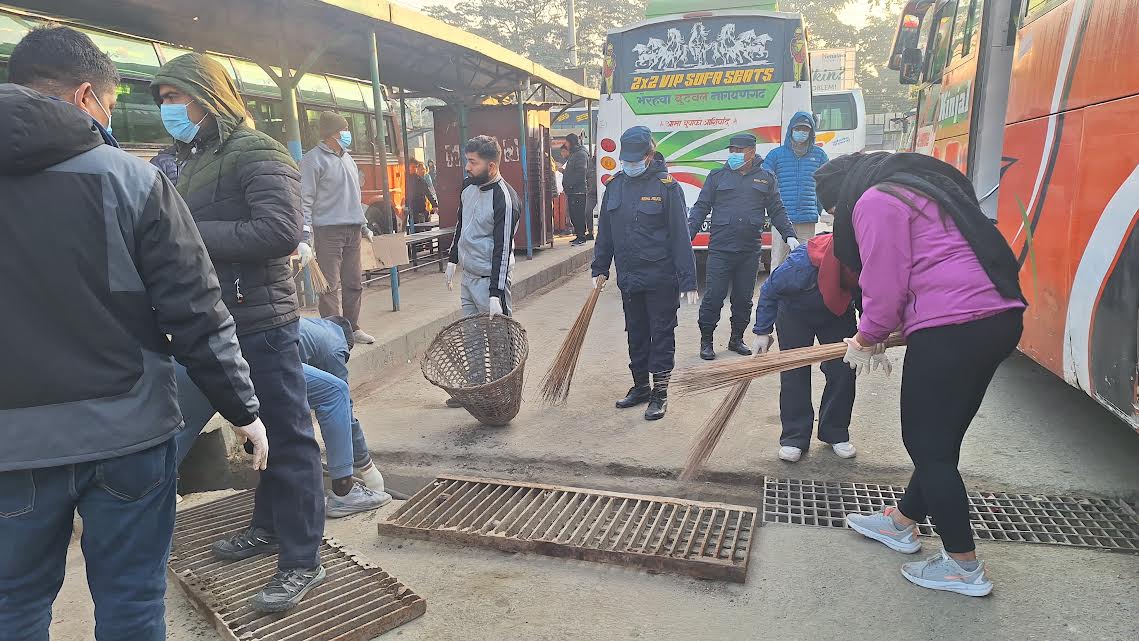 नयाँ बसपार्क, नयां बसपार्कसंग जोडिएको मुख्य सडक, बसपार्क भित्रका सबै नालीको सरसफाई गरिएको हो ।