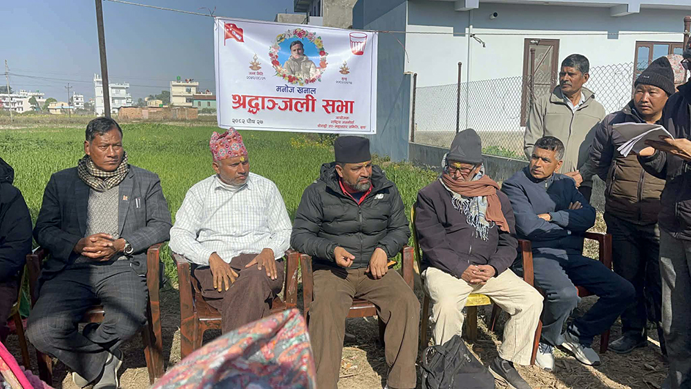 घोराही, पुस २९ गते । राष्ट्रिय जनमोर्चा दाङले स्व. मनोज खनालको स्मृतिमा श्रद्धाञ्जली सभा गरेको छ । राजमो घोराही नगर समितिका अध्यक्ष मनिराम खनालका कान्छा छोरा मनोजको स्मृतिमा शोकसभा आयोजना गरी श्रदाञ्जली अर्पण गरिएको हो ।