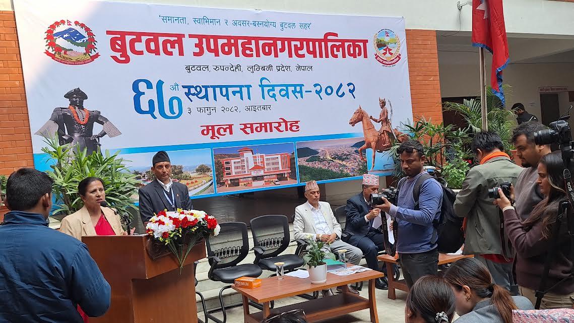 बुटवल, फागुन ३ गते । बुटवल उपमहानगरपालिकाले ६७ औं स्थापना दिवस मनाएको छ । स्थापना दिवसको अवसरमा विभिन्न कार्यक्रमहरु गर्दै आएको उपमहानगरले आइतबार आफ्नै कार्यालय परिसरमा स्थापना दिवस मनाएको हो ।