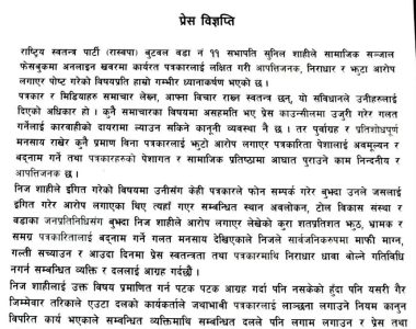 बुटवल, फागुन ७ गते । चुनावी अभियानलाई तीव्रता दिएको राष्टिय जनमोर्चाले घरदैलो अभियानलाइृ तीव्रता दिएको छ । केही दिन अघिदेखि चुनावी अभियान चलाएको राष्टिय जनमोर्चाले आफ्नो चुनावी घोषणा पत्र लगेर मतदाताको घरदैलोमा पुगेको हो ।