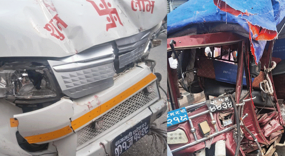 तिनकुनेबाट बसपार्कतर्फ जांदै गरेको बा प्र ०३००१ ज १२२९ नम्बरको ईभि हाइस र बिपरित दिसाबाट आइरहेको रा १ ह ४४३४ नं को ईरिक्सा आपसमा ठक्कीएका थिए ।