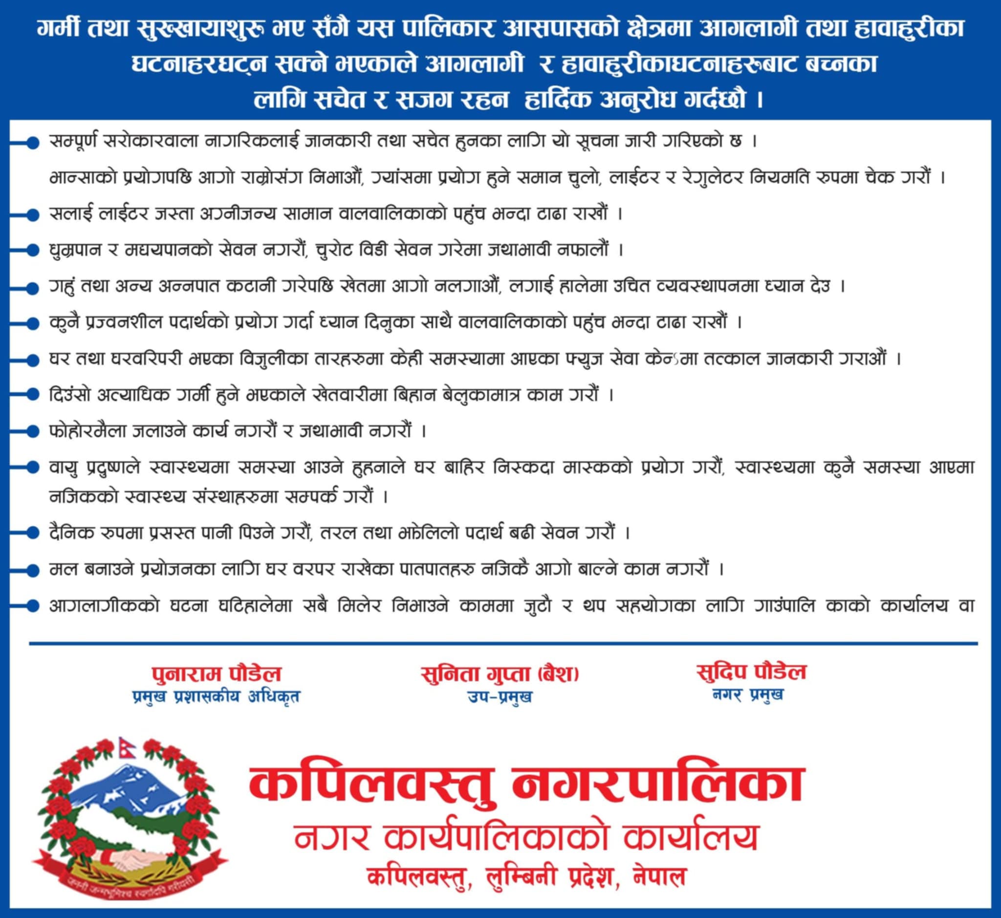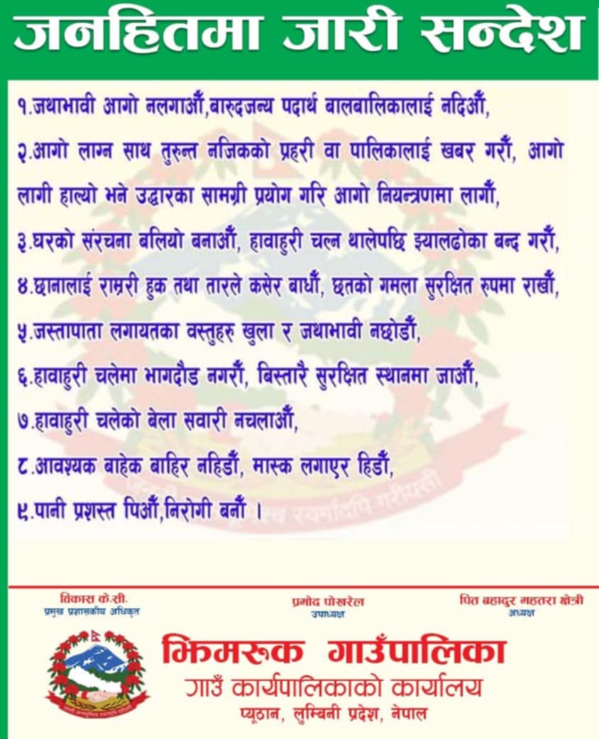 लागु औषध दुव्र्यसनीमा फसेका युवायुवतीहरुका निम्ति सचेतानमूलक कार्यक्रम गर्ने र ओसार पसार गर्नेलाई जनकावाही गर्ने रुपन्देही इन्चार्ज शरद सी र सेक्रेटरी विरेन्द्र सीले जारी गरेको विज्ञप्तीमा उल्लेख गरिएको छ ।