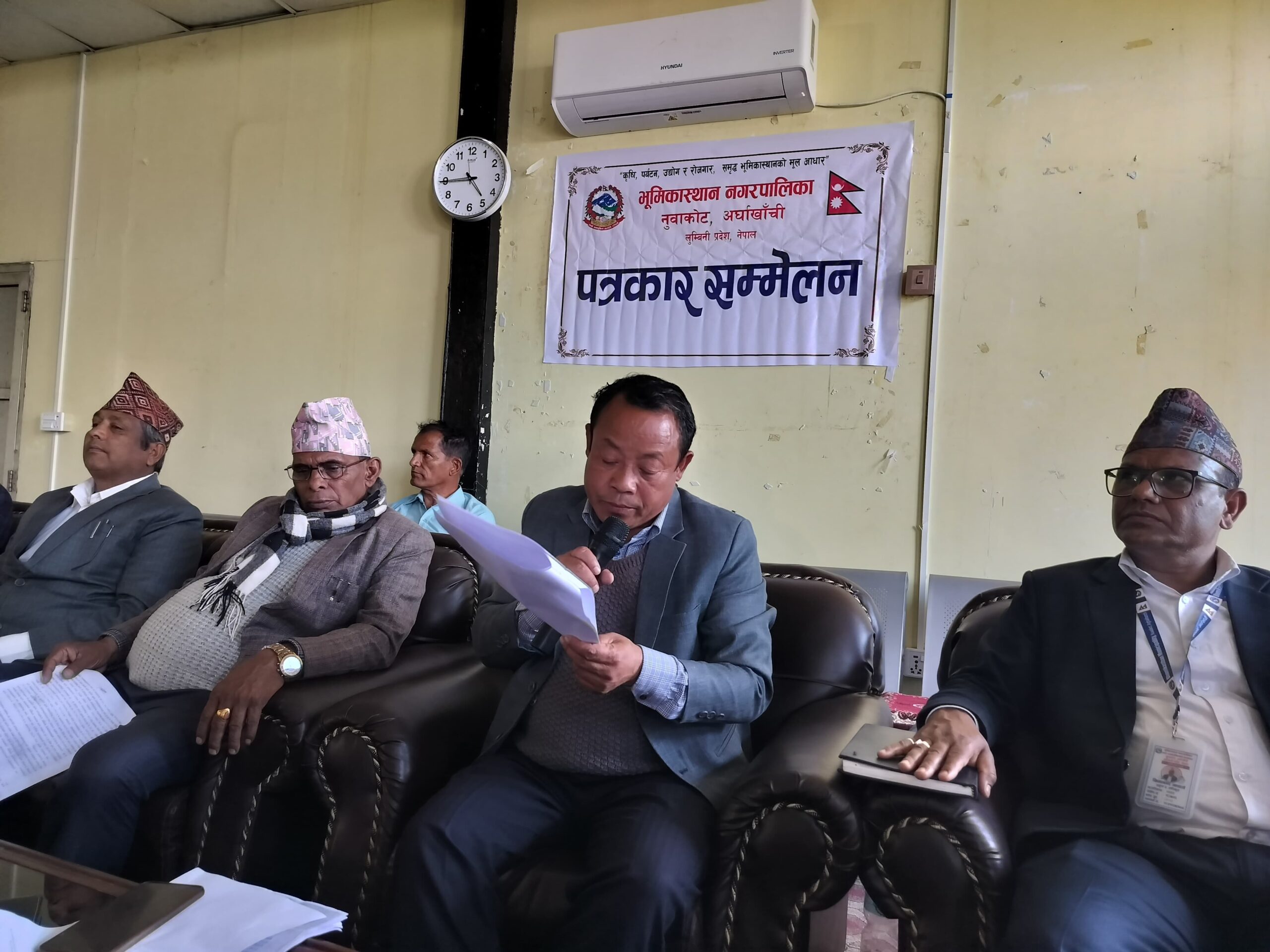 अर्घाखांची ,चैत ६ गते । अर्घाखांची भूमिकास्थान नगरपालिकाका नगरप्रमुख झविलाल थापाले केही अनाधिकृत संस्था वा व्यक्तिले किर्ते हस्ताक्षर गरेर नगरपालिकालाई बदनाम गराउन खोजेको बताएका छन् । भूमिकास्थान नगरपालिकाले वडा नम्बर ९ ढिकुराको सानोडेभाको चुनढुंगा उत्खनन्मा रोक लगाईएको थियो ।