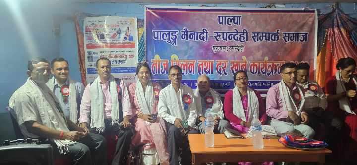 बुटवल, भदौ १५ गते । पाल्पा पालुङ्ग मैनादी रुपन्देही सम्पर्क समाजले हरि तालिका तीजको अवसरमा तीज मिलन कार्यक्रम गरेको छ । पाल्पाको पालुङ मैनादीबाट रुपन्देहीमा अस्थायी वा स्थायी रुपमा बसोवास गर्दै आएकाहरुबीच तीज मिलन कार्यक्रम आयोजना गरिएको हो । महिला अगुवा मधुकला कुँवरको प्रमुख आतिथ्यता तीज मिलन तथा दरखाने कार्यक्रम भएको हो ।