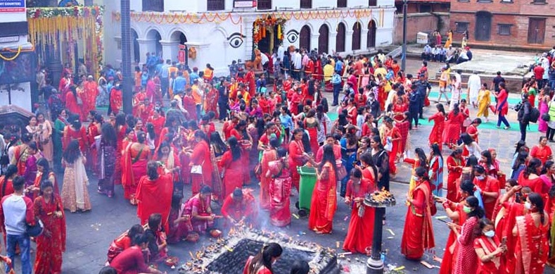 काठमाडौँ । धर्मशास्त्रीय रुपमा महिला र पुरुष दुवैले हरितालिका (तीज) को व्रत गर्नुपर्ने भएपनि सामाजिक चर्चा भने महिलाले श्रीमान्को दीर्घायुको कामनाका लागि गर्ने बुझाइ छ । व्रत गर्ने पुरुषले विधुर हुनु नपर्ने, नारीले अटल सौभाग्य र अविवाहित पुरुष, महिलाले गुण सम्पन्न वर वा वधु पाउने शास्त्रीय वचन रहेको धर्मशास्त्रविद् एवं नेपाल पञ्चाङ्ग निर्णायक विकास समितिका पूर्वअध्यक्ष प्रा डा रामचन्द्र गौतम बताउँछन् । भाद्र शुक्ल तृतीयाका दिनमा मनाइने हरितालिका ९तीज० पर्व आज देवादिदेव महादेवको पूजा आराधना गरी मनाइँदैछ । भाद्र शुक्ल तृतीयामा व्रत बसी शिव पार्वतीको पूजा, उपासना गरेमा पारिवारिक सुख, शान्ति र कल्याणको प्राप्ति हुने धार्मिक विश्वास छ ।