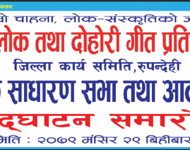 कार्तिक १ गते एकल नृत्यको फाइर्नलबुटवल, असोज ३० गते । मिलन कला केन्द्र बुटवलले सञ्चालन गरेको एकल नृत्य प्रतियोगिताको फाईनल सो यही कार्तिक १ गते हुंदै...पुरा पढ्नुहोस