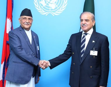 प्रधानमन्त्री ओली र पाकिस्तानी समकक्षीबीच भेटवार्ताकाठमाडौँ । प्रधानमन्त्री केपी शर्मा ओलीले पाकिस्तानका प्रधानमन्त्री शहबाज शरिफसँग भेटवार्ता गरेका छन् । संयुक्त राष्ट्रसङ्घको ७९औँ महासभामा भाग लिन नेपाली...पुरा पढ्नुहोस