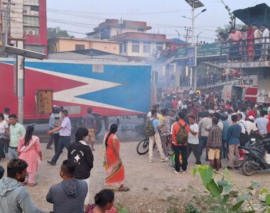 बुटवलको अस्पताललाइन अगाडि गुडिरहेको ट्रकमा आगलागी