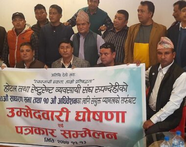 रुपन्देहीका होटल तथा पर्यटन व्यवसायी चुनावी अभियानमाश्यामलाल पोखरेल : बुटवल, फागुन १३ रुपन्देहीका होटल तथा पर्यटन व्यवसायीको नयां नेतृत्वका लागि चुनावी चहल पहल बढेको छ । समुन्द्र...पुरा पढ्नुहोस