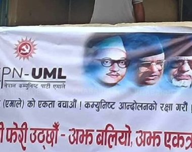 ध्वस्त एमाले कार्यालयमा किन टाँगियो ओली बिनाको ब्यानर ?काठमाडौँ । जेनजी आन्दोलनका ध्वस्त पारिएको नेकपा एमालेको च्यासलस्थित कार्यालयमा अध्यक्ष केपी शर्मा ओलीको तस्बिरबिनाको ब्यानर टाँगिएको छ । आगजनी गरिएको...पुरा पढ्नुहोस