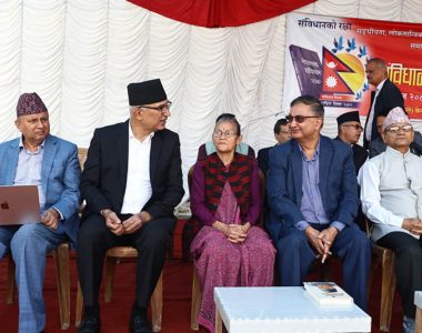 जनताको संकल्प र राष्ट्रिय एकताको प्रतीकः पोख्रेलकाठमाडौँ । नेकपा एमालेका वरिष्ठ उपाध्यक्ष ईश्वर पोखरेलले संविधान दिवसलाई नेपाली जनताको संकल्प र राष्ट्रिय एकताको प्रतीकका रुपमा स्मरण गरेको बताएका...पुरा पढ्नुहोस