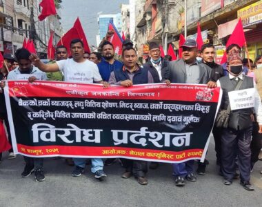 चर्को व्याज र महंगी भ्रटाचारबिरुद्व नेकपाको बिरोध प्रदर्शनबुटवल, फागुन ५ गते । नेपाल कम्युनिष्ट पार्टीले बैंकको चर्को व्याज, मिटरव्याजी र महंङी भ्रष्टाचारबिरुद्व देशभर बिरोध प्रदर्शन गरेको छ ।...पुरा पढ्नुहोस