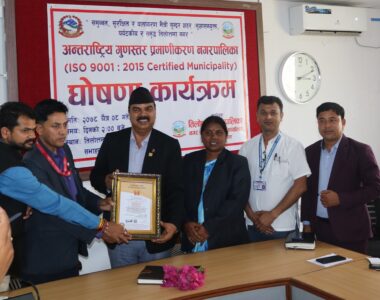 श्यामलाल पोखरेल बुटवल,चैत्र८गते।रुपन्देहीको तिलोत्तमा नगरपालिकाले अन्तर्राष्ट्रिय गुणस्तर मान्यता प्राप्त गरेको छ। अन्तर्राष्ट्रिय गुणस्तर मान्यता प्राप्तका लागि अन्तर्राष्ट्रिय सूचकका मापदण्ड अनुसार काम...पुरा पढ्नुहोस